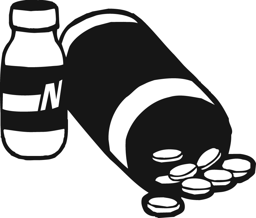 Ilustración de una botella de insulina y un envase de pastillas de costado con algunas de las pastillas saliéndose a la mesa.