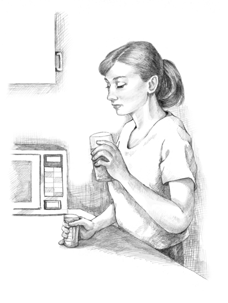 Drawing of a woman taking medication.