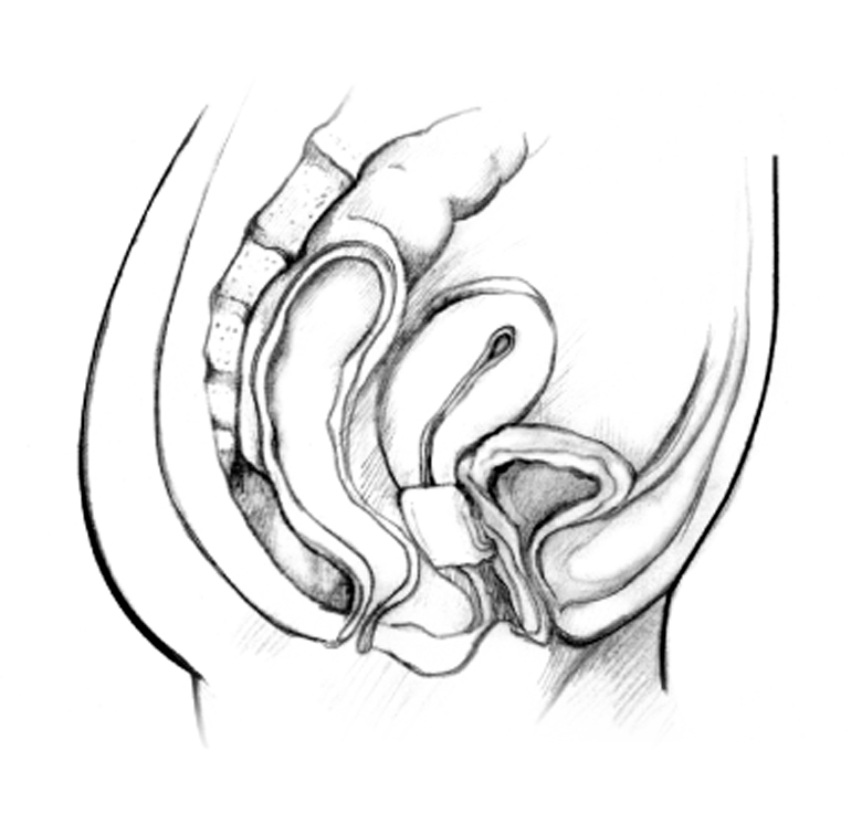 Drawing of a woman’s pelvic area with the vagina, bladder, and an inserted pessary.